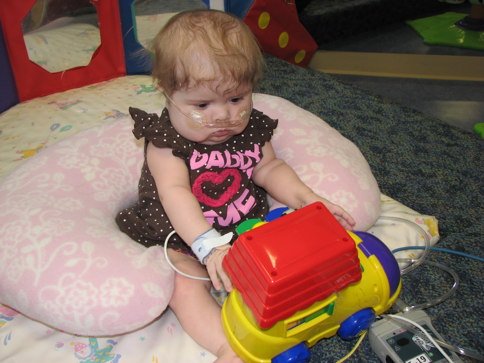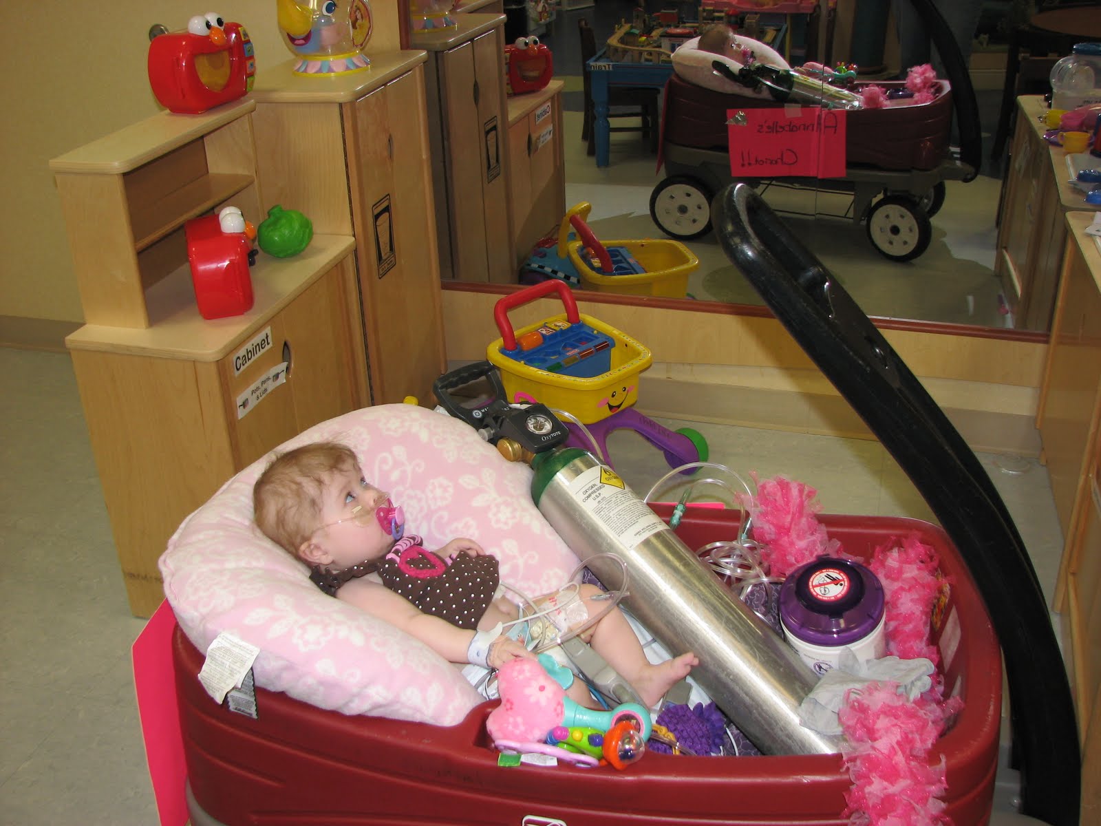 A FUN thing though! Yesterday (Tuesday) we went to the play room for the first time! It was the first time Annabelle was out of the normal hospital “pod.” The playroom was closed, but they opened it just for us (she can’t be around other kids at the hospital for obvious reasons.)